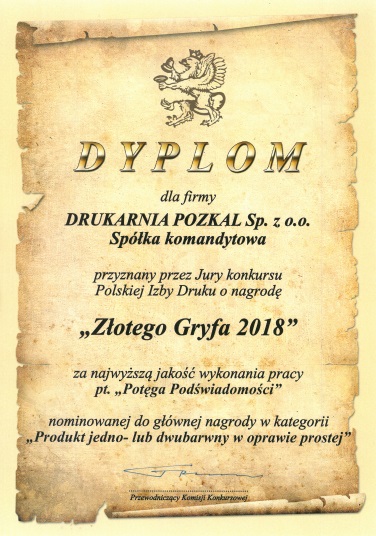 Również w tym roku, wśród nominowanych dwukrotnie znalazła się Drukarnia POZKAL. W kategorii: „Produkt wielobarwny w oprawie złożonej” za książkę Wydawnictwa Świętego Wojciecha pt.: „Nie Przyszedłem Pana Nawracać” oraz w kategorii: „Produkt jedno-lub dwubarwny w oprawie prostej” za książkę „Potęga Podświadomości” Wydawnictwa Świat Książki.